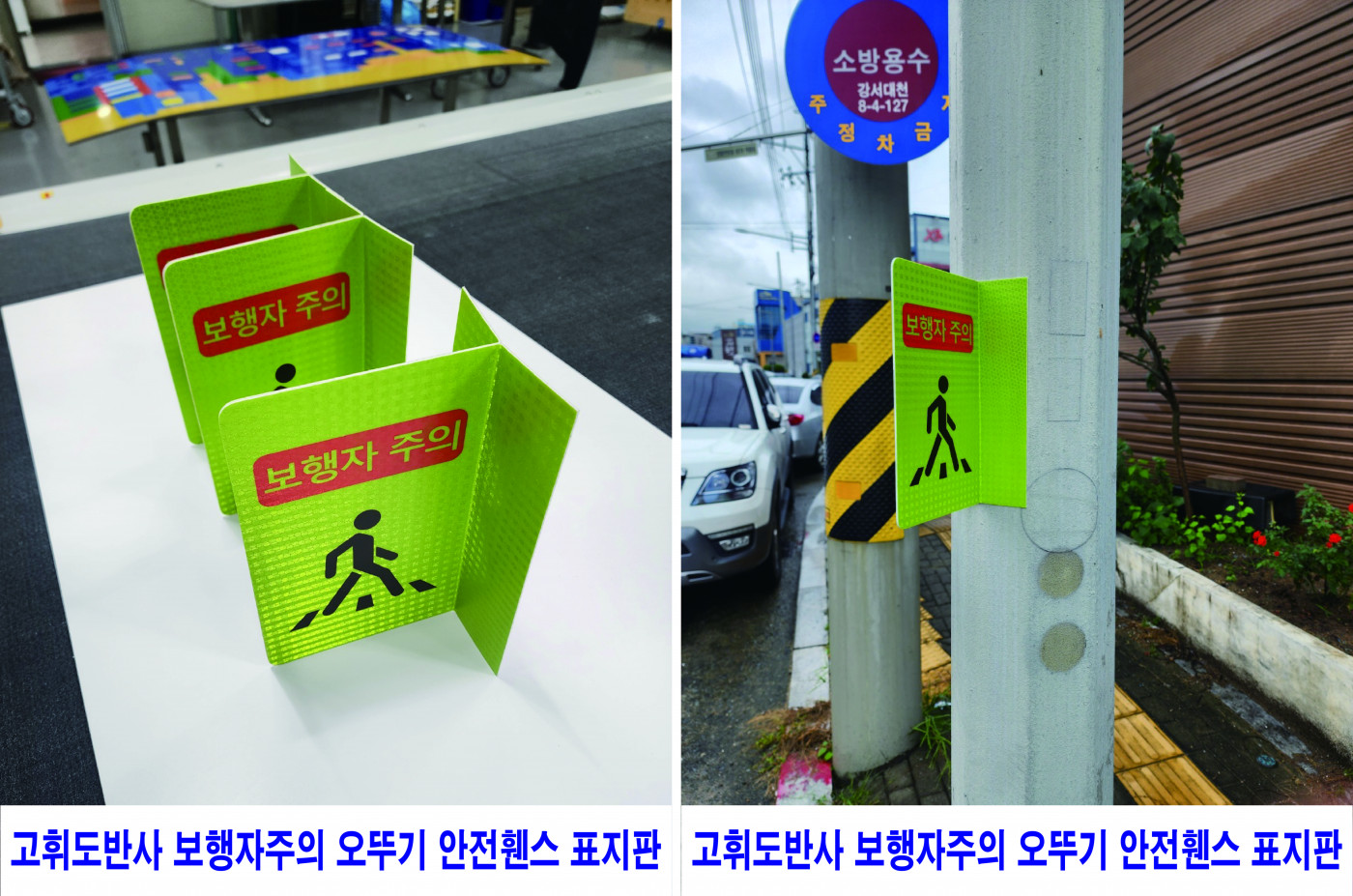 고휘도반사 보생자주의 오뚜기 안전휀스 표지판